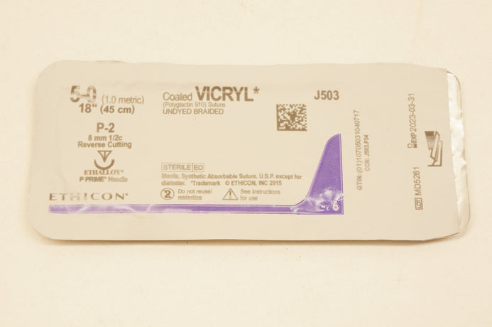 - Ethicon J503 5-0 VICRYL, P-2, 8mm 1/2c, 18inch