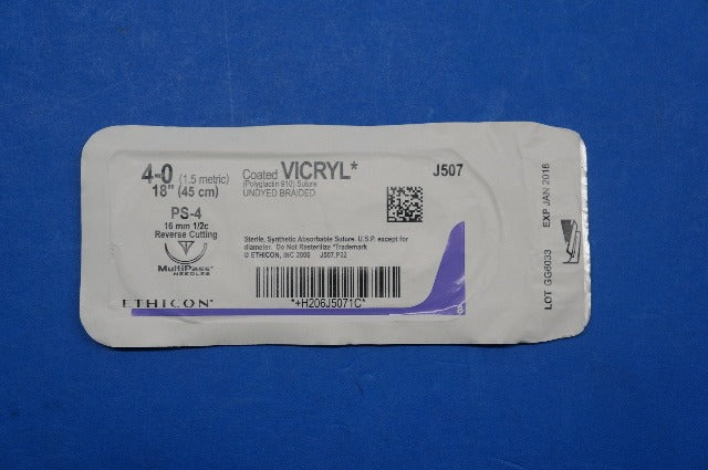 - Ethicon J507 4-0 VICRYL, PS-4 16mm 1/2c Reverse Cutting, Undyed Braided, 18inch