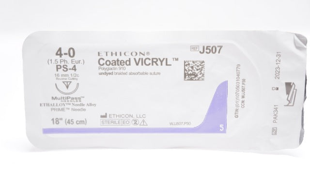 Ethicon J507 4-0 VICRYL Stre PS-4 16mm 1/2c Reverse Cutting, 18inch (x)