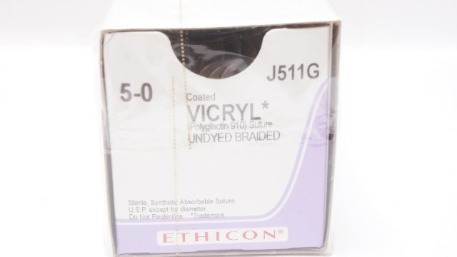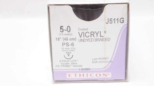 Ethicon J511G 5-0 Coated Vicryl Polyglactin 910 Suture Undyed Braided PS-6 10mm 1/2c, Reverse Cutting18inch