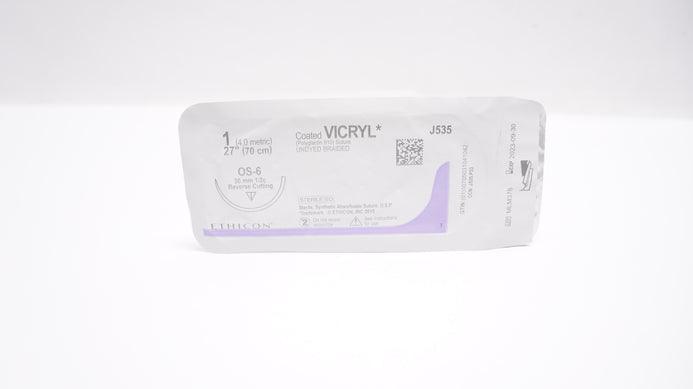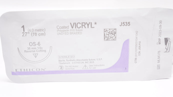 - Ethicon J535 1 VICRYL Polyglactin Stre OS-6 36mm 1/2c Reverse Cutting, 27inch(x)