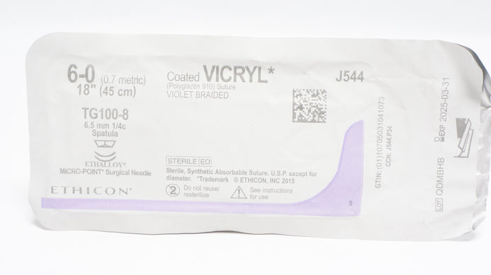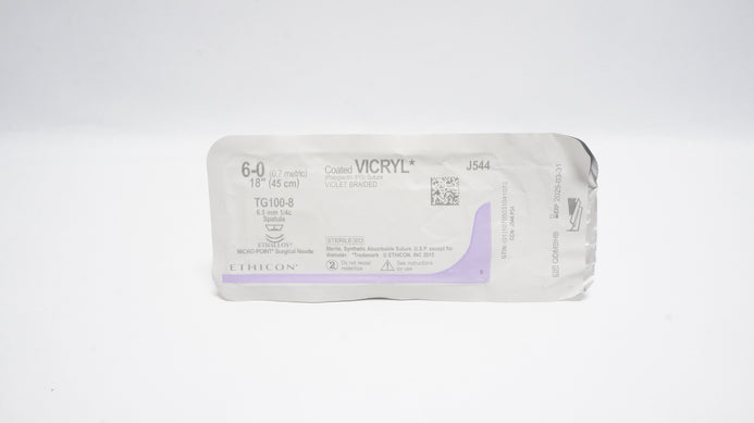 Ethicon J544 6-0 Coated VICRYL Polyglactin 910 Suture Violet Braided TG100-8 6.5mm 1/4c Spatula 18inch