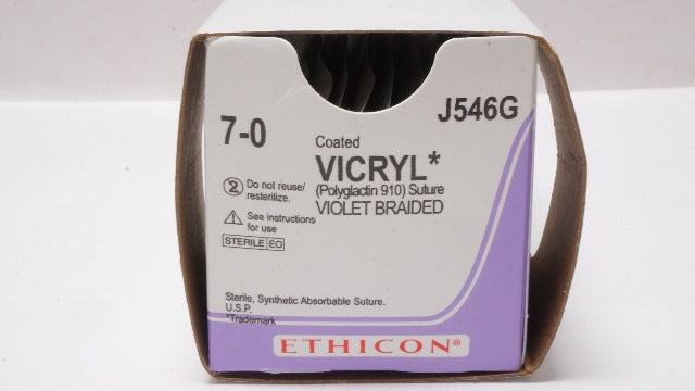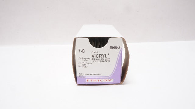 - Ethicon J546G 7-0 Vicryl, TG140-8, 6.5mm 3/8c Spatula, 18inch - Box of 12