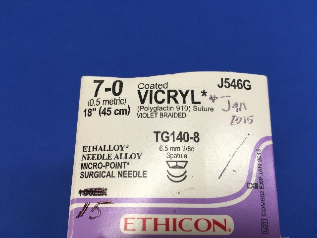 Ethicon J546G Coated VICRYL, MICROPOINT - Spatula, Absorbable, TG140-8 6.5mm / TG140-8 3/8 Circle, Violet Braided 12" 30cm, Size: 7-0