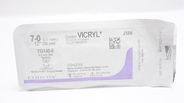 - Ethicon J566 7-0 Coated VICRYL TG140-8 6.5mm 3/8c Spatula, 12inch (x)