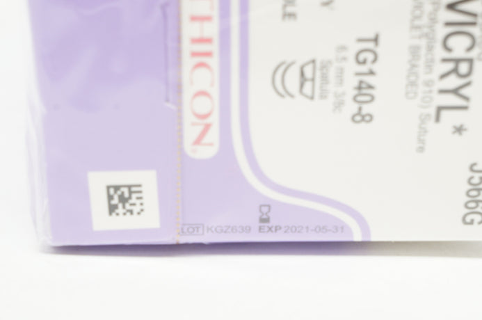 Ethicon J566G 7-0 Coated VICRYL TG140-8 12inch 6.5mm 3/8c Spatula - Box of 12 (x)