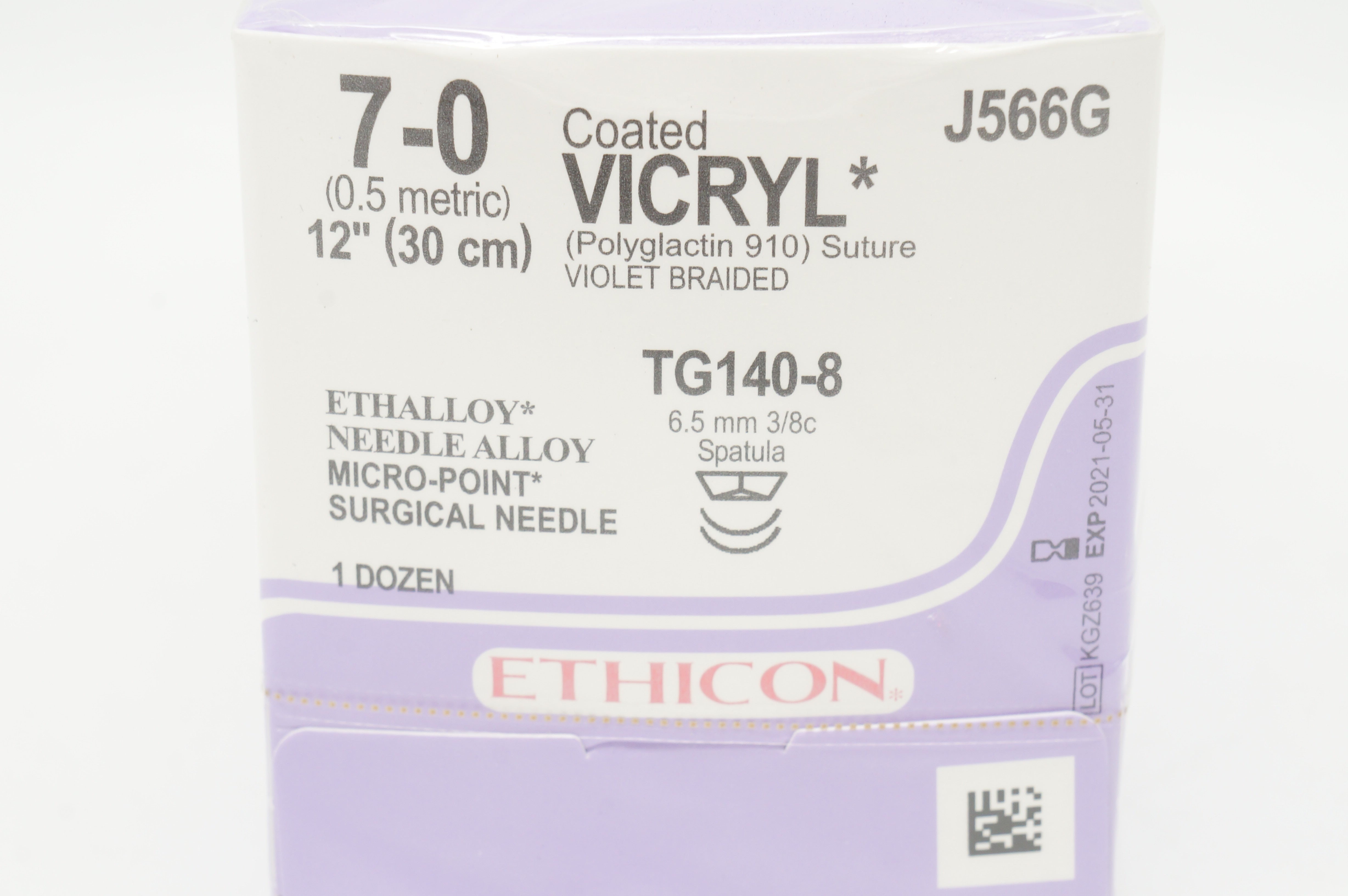 - Ethicon J566G 7-0 Coated VICRYL TG140-8 12inch 6.5mm 3/8c Spatula - Box of 12 (x)