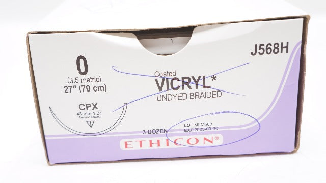Ethicon J568H 0 VICRYL, CPX, 48mm 1/2c Reverse Cutting, 27inch (x) - Box of 29