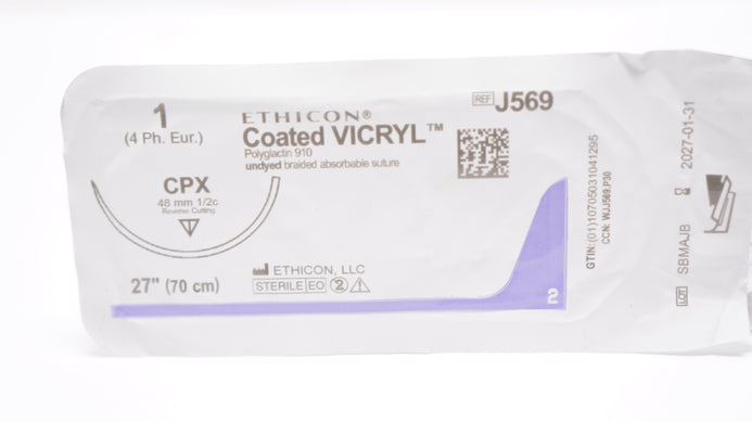 Ethicon J569 1 Coated VICRYL Stre CPX 48mm 1/2c Reverse Cutting, 27inch