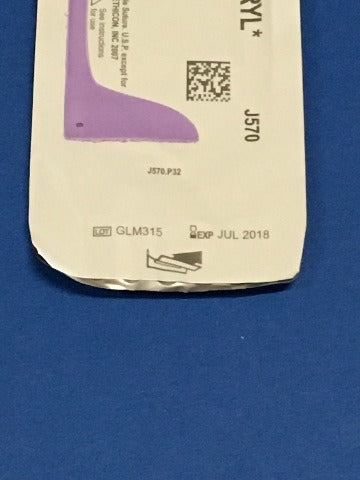 Ethicon J570 Vicryl, Coated Violet Braided, 6-0, 18