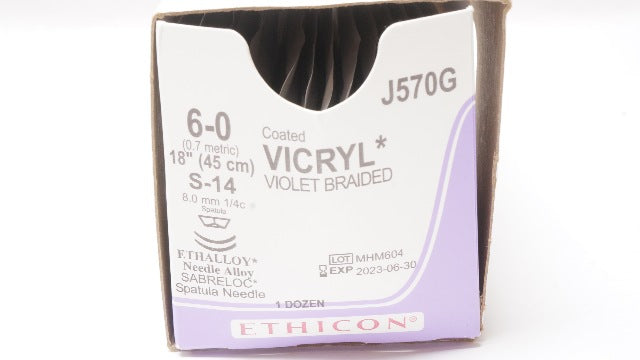 Ethicon J570G 6-0 Coated VICRYL Stre S-14 8.0mm 1/4c Spatula, 18inch - Box of 12