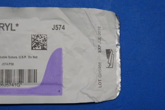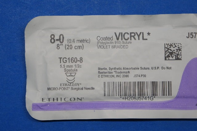 Ethicon J574 8-0 VICRYL, TG160-8 5.5mm 1/2c Spatula, Violet Braided, 8