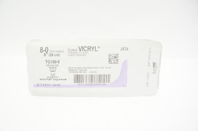 - Ethicon J574 8-0 VICRYL TG160-8 5.5mm 1/2c Spatula Violet Braided 8 (x)