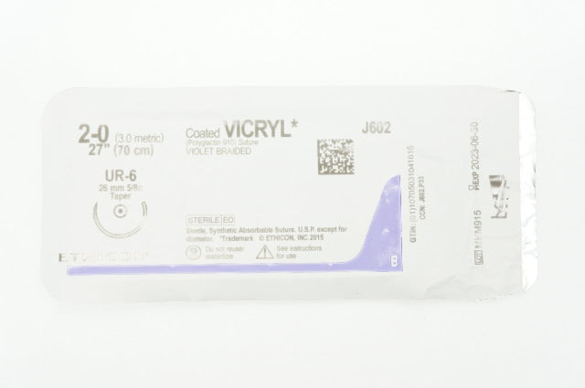 Ethicon J602 2-0 Coated VICRYL (Polyglactin 910) Suture Violet Braide UR-6 26mm 5/8c Taper 27inch