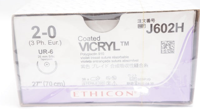 - Ethicon J602H 2-0 Coated Vicryl UR-6 26mm 5/8c Taper, 27inch - Box of 36