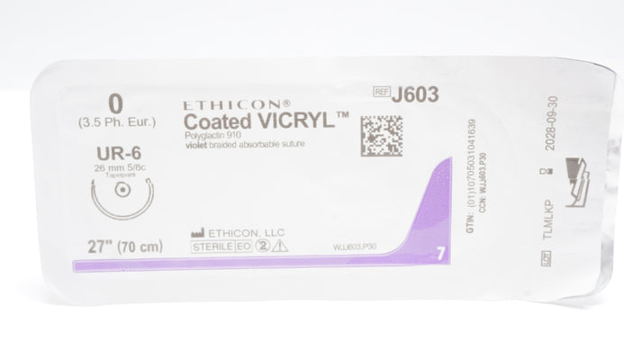 Ethicon J603 0 Coated VICRYL Braided Stre UR-6, 26mm 5/8c Taperpoint, 27inch