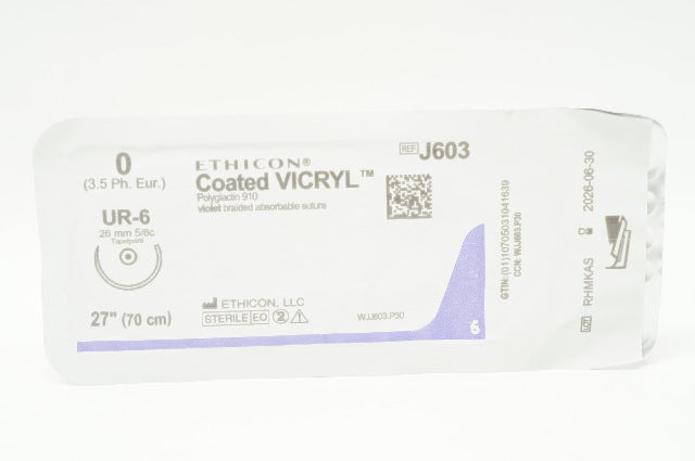 - Ethicon J603 0 Coated VICRYL, UR-6, 26mm 5/8c Taperpoint, 27inch