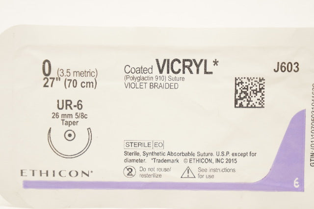 - Ethicon J603 0 VICRYL UR-6 26mm 5/8c Taper 27 inch (x)
