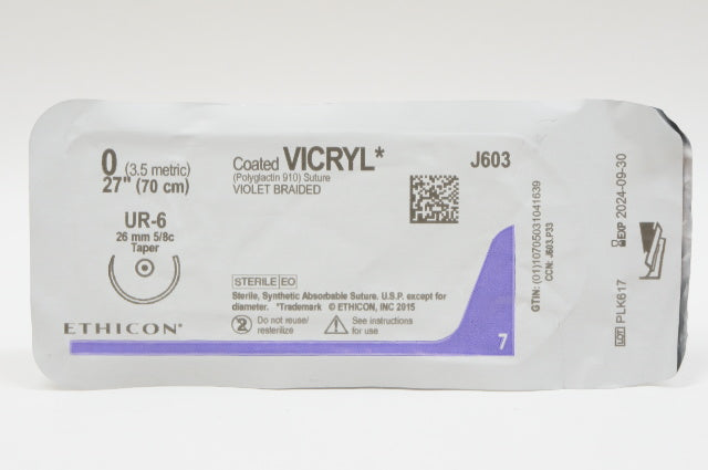 Ethicon J603 0 VICRYL, UR-6, 26mm 5/8c Taper, 27inch