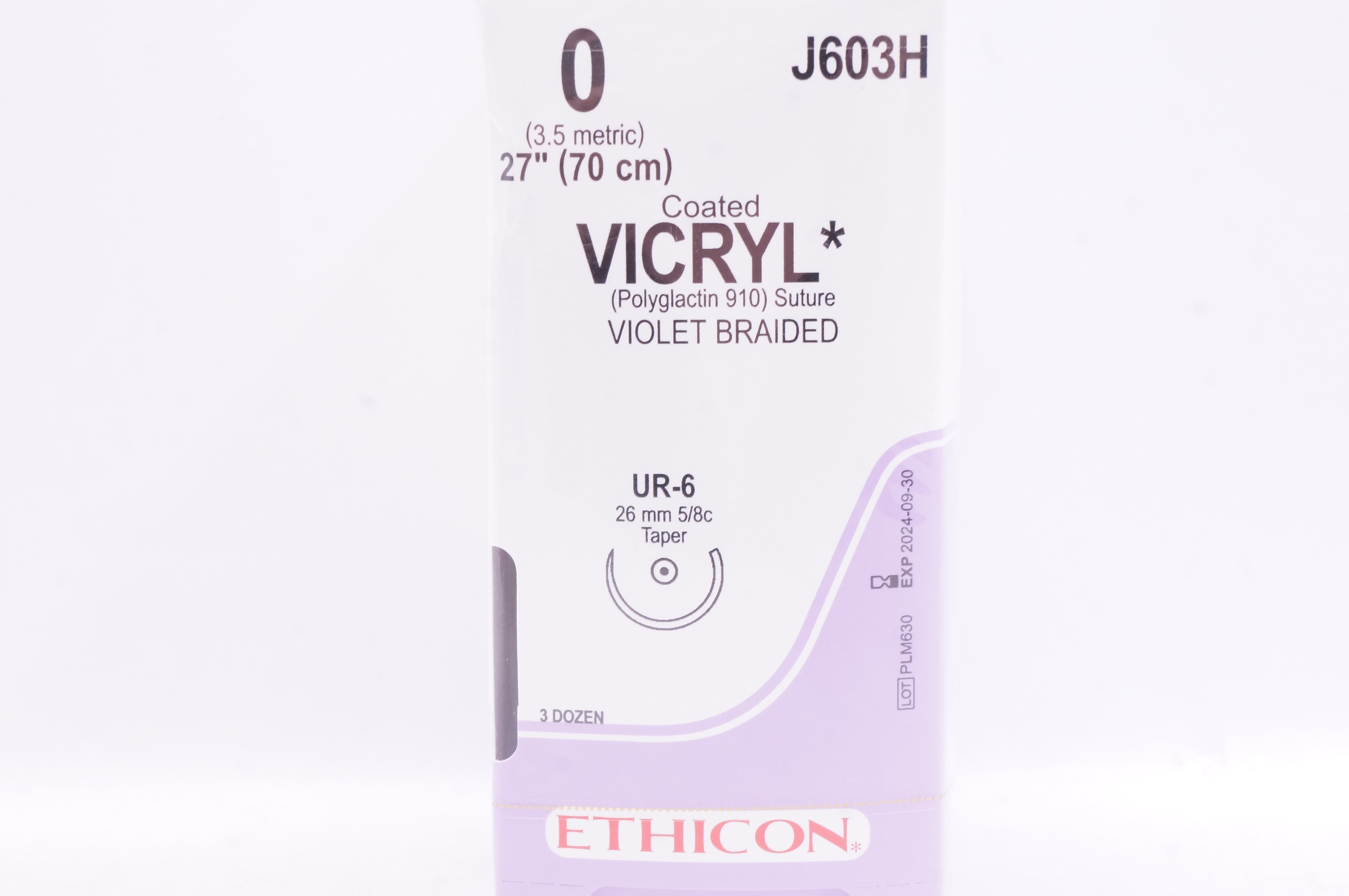- Ethicon J603H 0 VICRYL UR-6 26mm 5/8c Taper 27inch - Box of 36