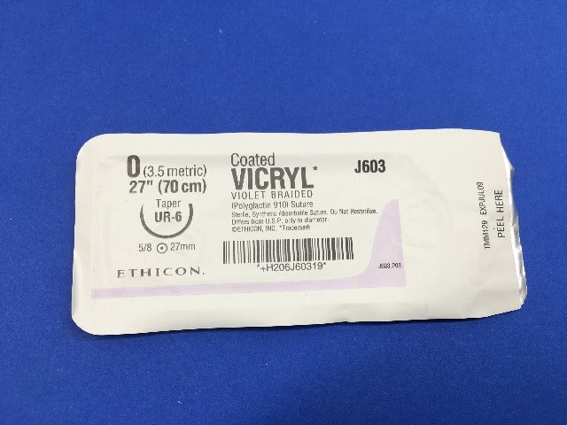 Ethicon J603H Coated VICRYL, Taper Point, Absorbable, UR-6 26mm 5/8 Circle, Violet Braided 27" 70cm, Size: 0