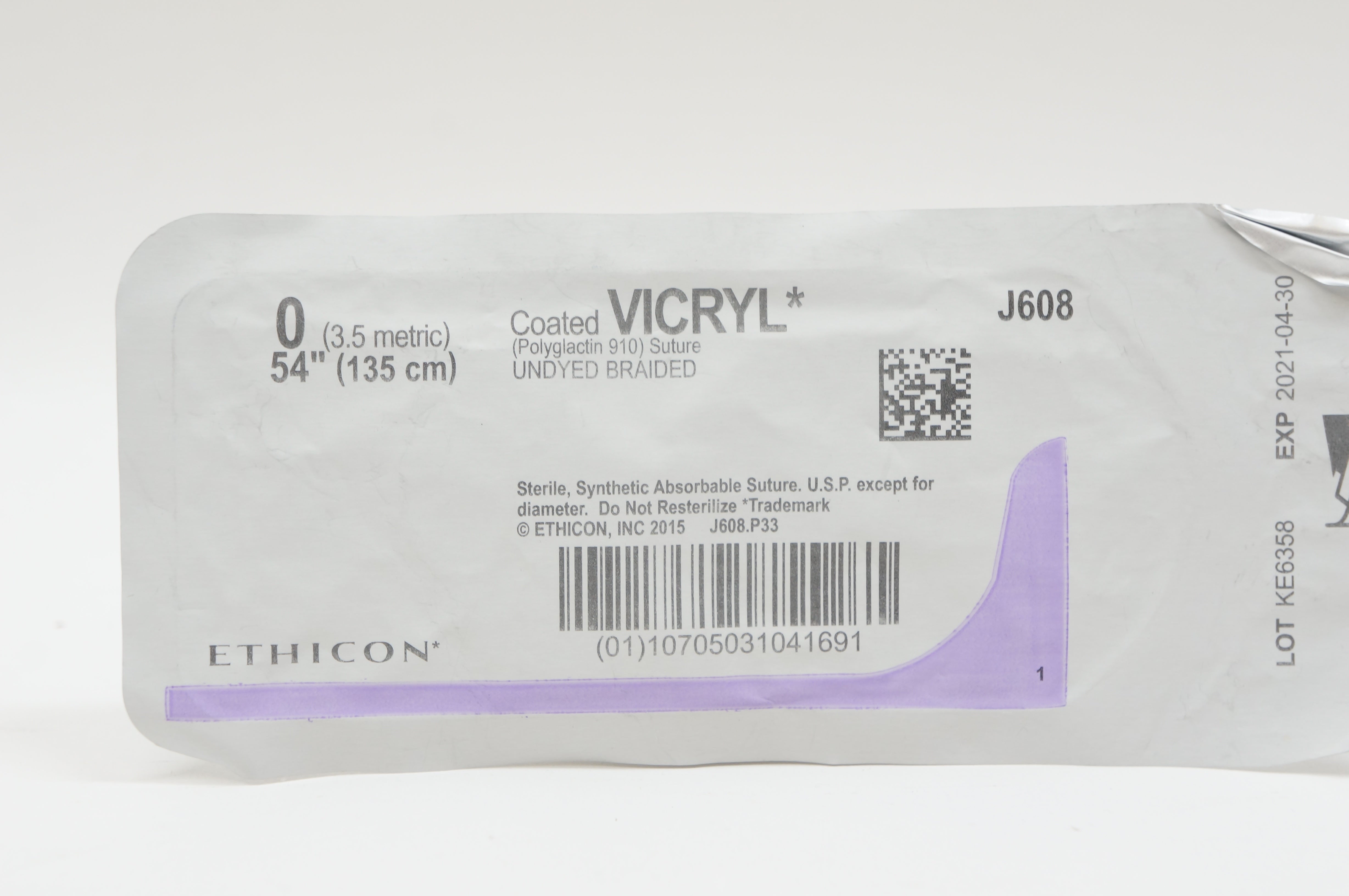 Ethicon J608 0 VICRYL, Undyed Braided, 54inch