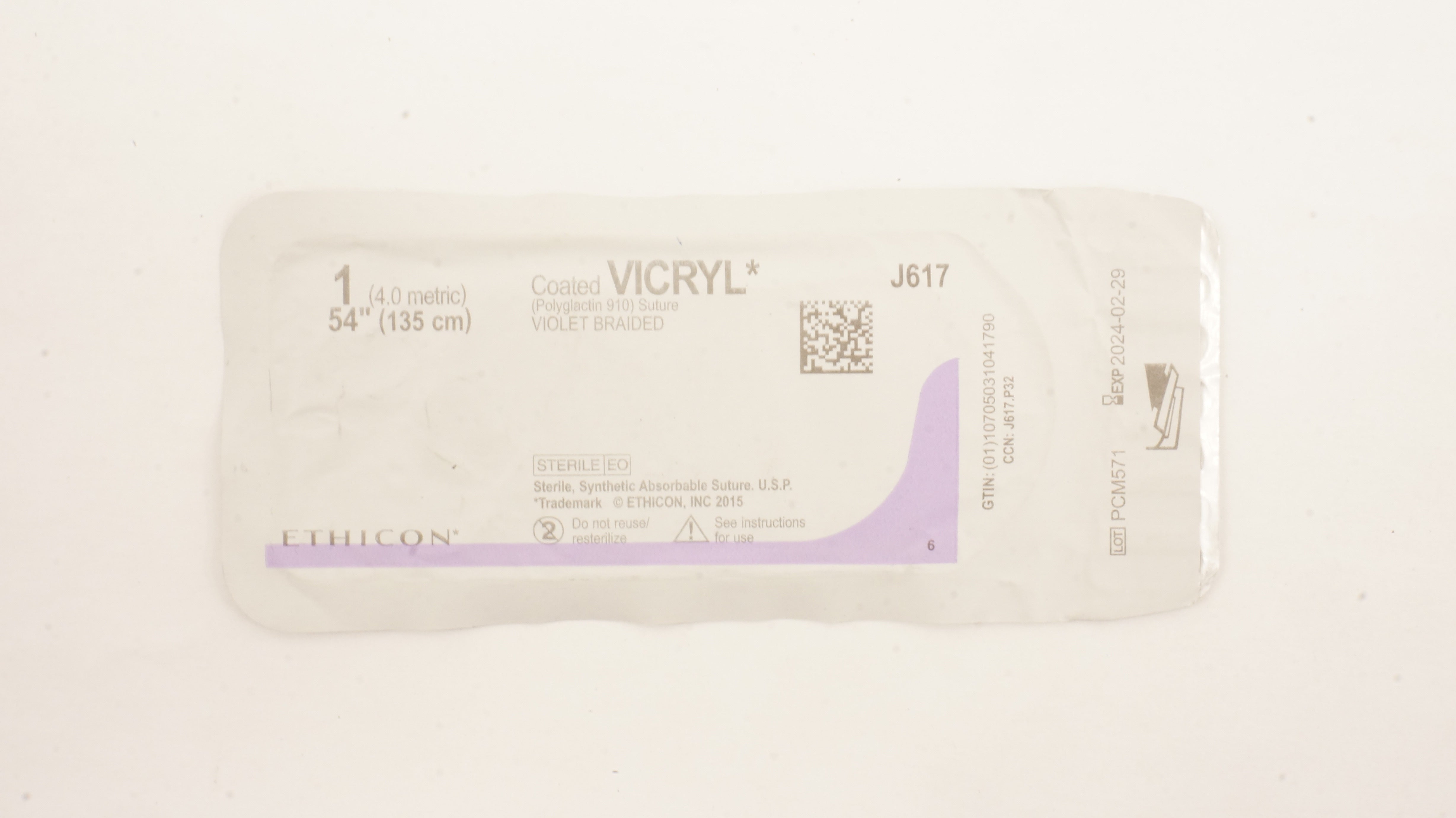 - Ethicon J617 1 Coated VICRYL Polyglactin 910 Stre Violet Braided, 54inch (x)