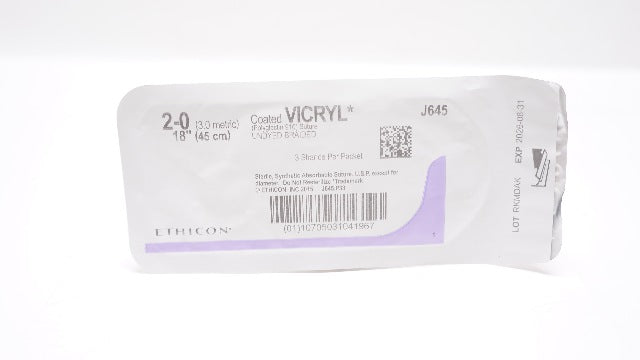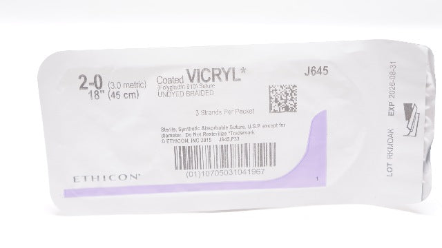 - Ethicon J645 2-0 VICRYL, Undyed Braided, 18inch