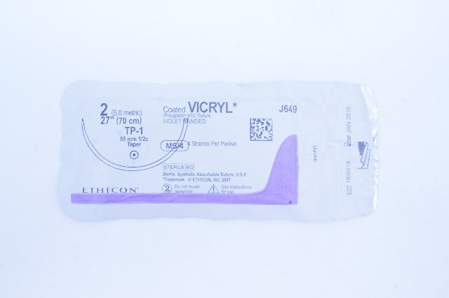 Ethicon J649 2 Coated VICRYL Stre TP-1 65mm 1/2c Taper 27 inch MS/4 (x)