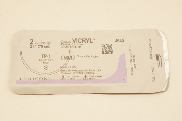 - Ethicon J649 2 VICRYL, TP-1, 65mm 1/2c Taper, 27inch