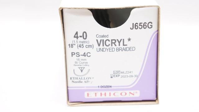 Ethicon J656G 4-0 Coated Vicryl Undyed Braided PS-4C 18inch (x) - Box of 9