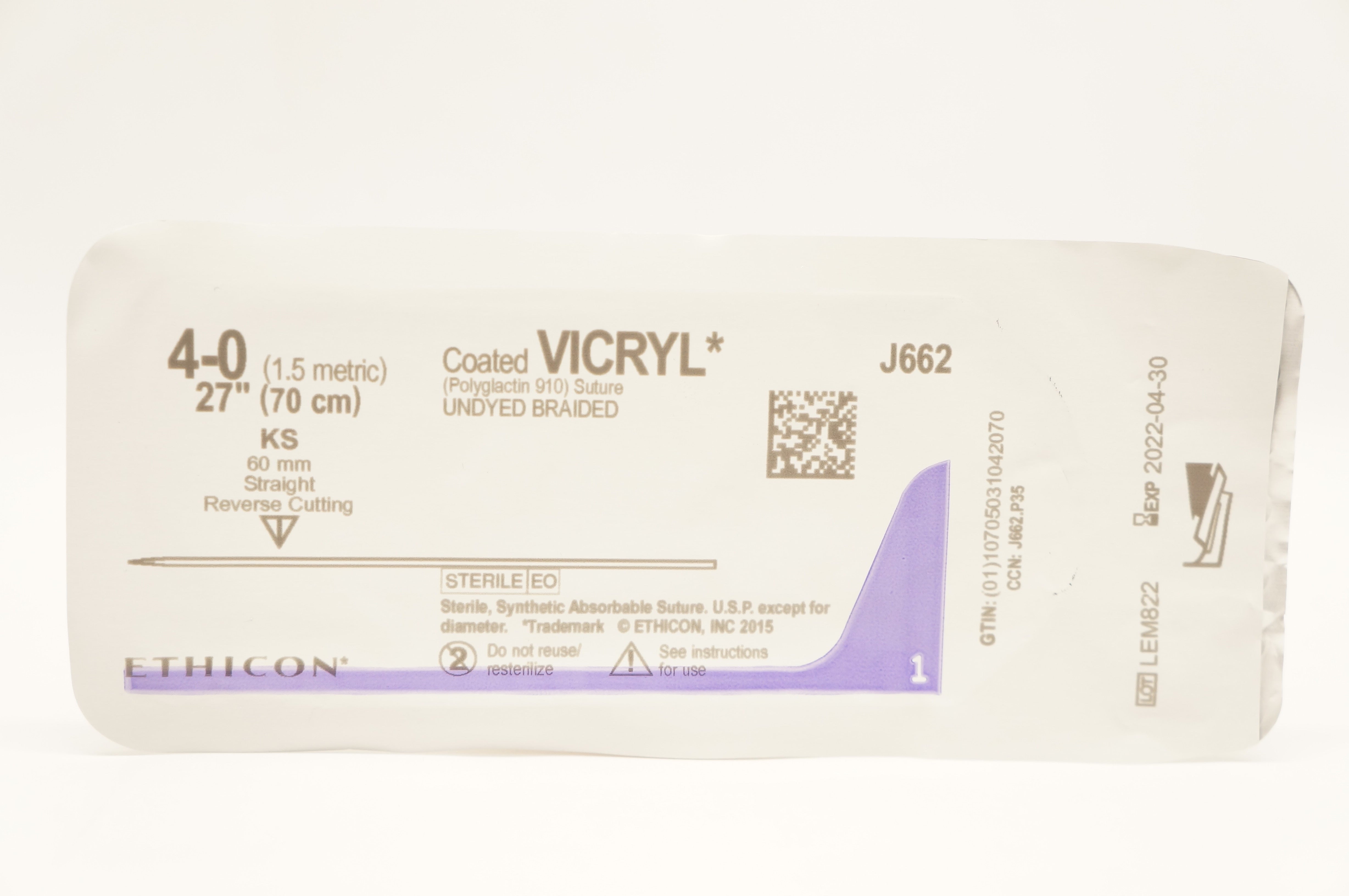 - Ethicon J662 4-0 Coated VICRL Stre KS 60mm Straight Reverse Cutting, 27inch
