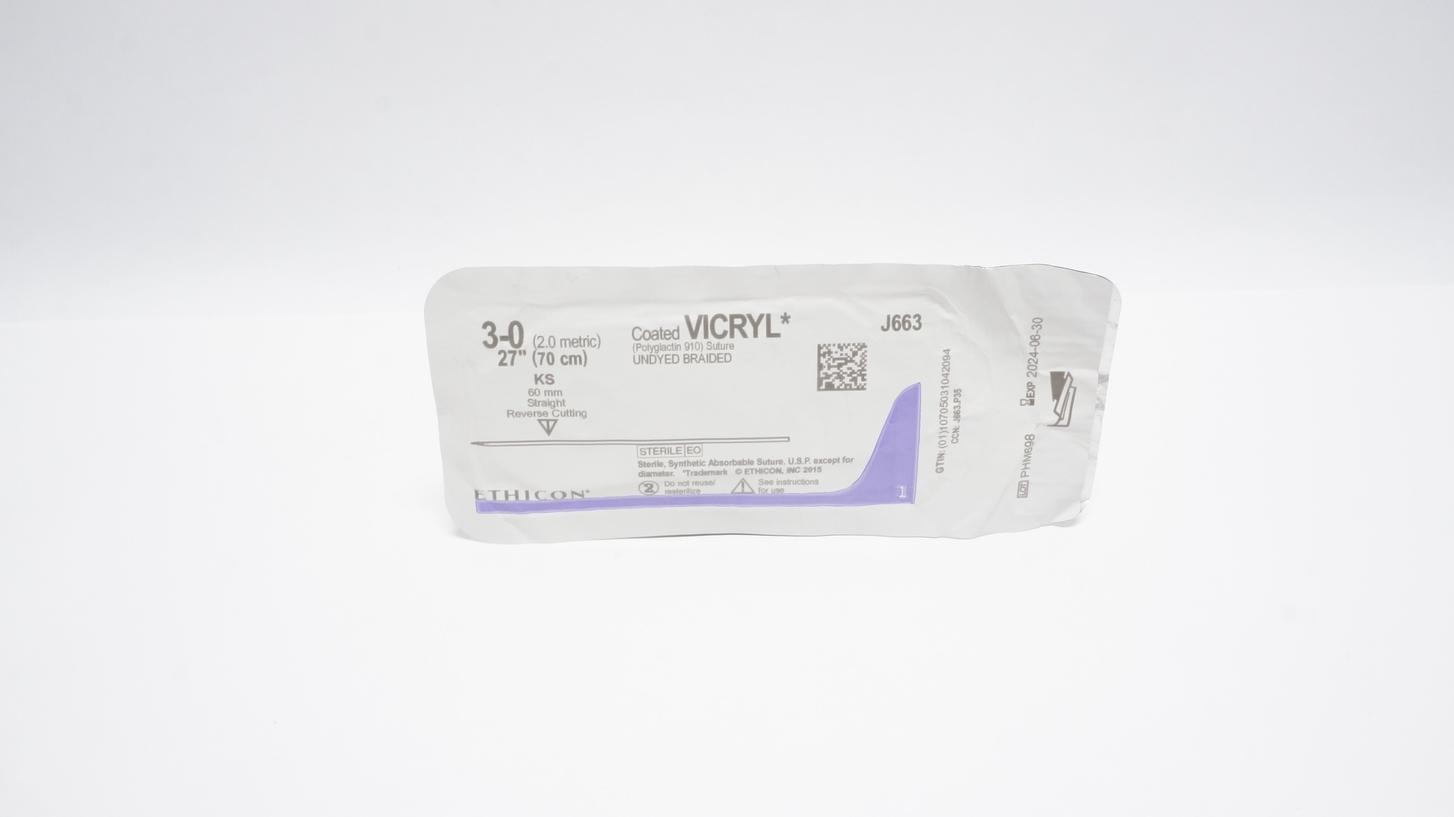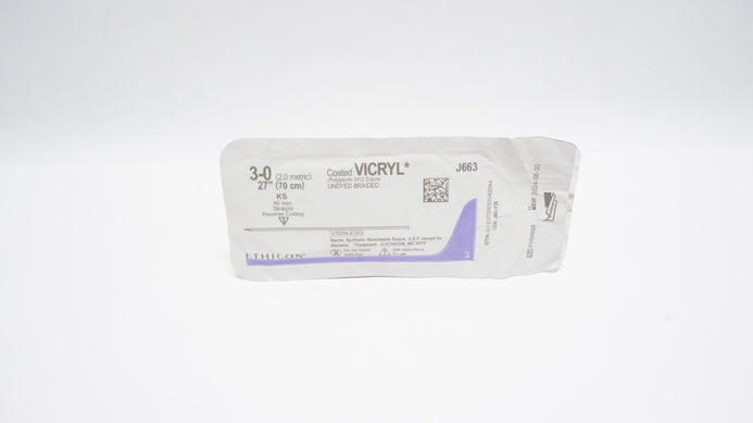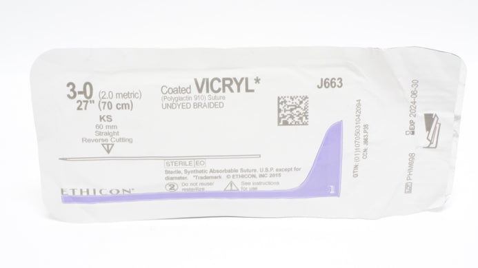 - Ethicon J663 3-0 Coated VICRYL, KS, 60mm Straight Reverse Cutting, 27inch (x)