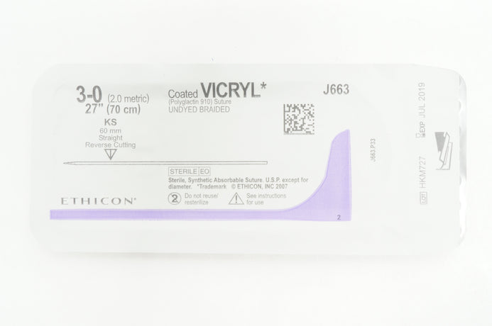 - Ethicon J663 3-0 VICRYL, KS, 60mm Straight, 27inch (x)