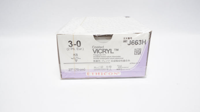 Ethicon J663H 3-0 VICRYL, CT-1, Straight Reverse Cutting, 27inch - Box of 35