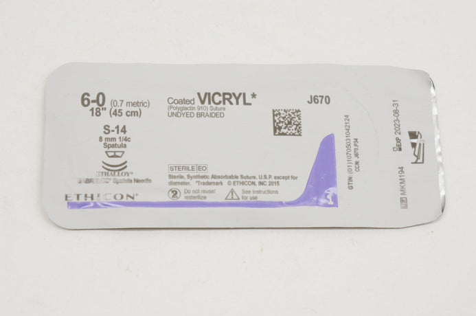 Ethicon J670 6-0 VICRYL, S-14, 8mm 1/4c Spatula, 18inch