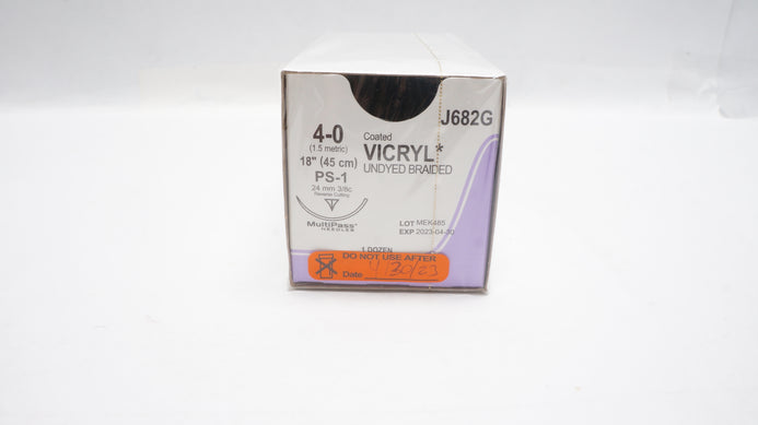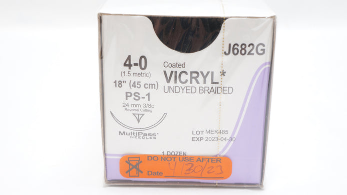 - Ethicon J682G 4-0 Coated Vicryl PS-1 24mm 3/8c Reserve Cutting 18In-Box of 12(x)