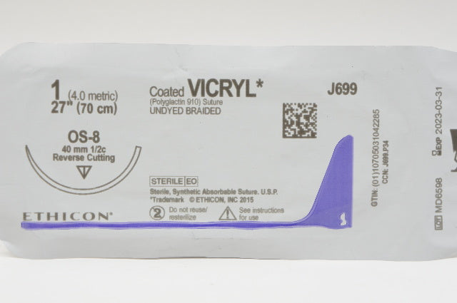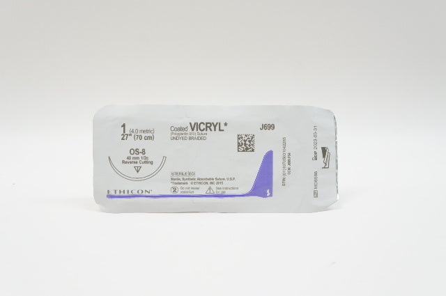 - Ethicon J699 1 VICRYL, OS-8, 40mm 1/2c Reverse Cutting, 27inch