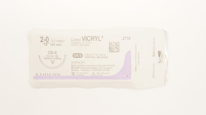 - Ethicon J710 2-0 Coated Vicryl (Polyglactin 910) Stre OS-6 36mm 1/2c 18inch (x)