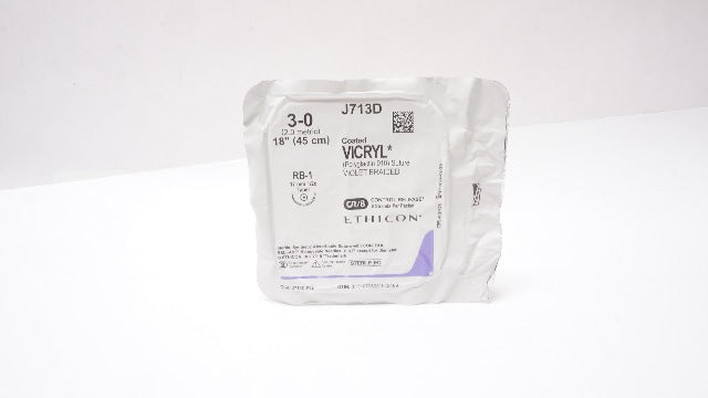 - Ethicon J713D 3-0 Coated VICRYL Stre RB-1 17mm 1/2c Taper 18inch (x)
