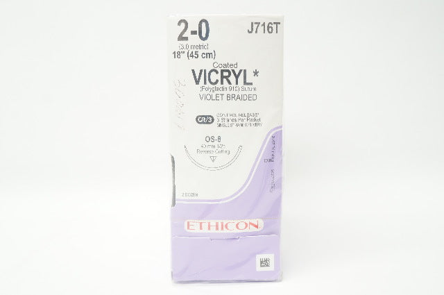 - Ethicon J716T 2-0 VICRYL, OS-8, 40mm 1/2c, 18inch (x) - Pack of 24