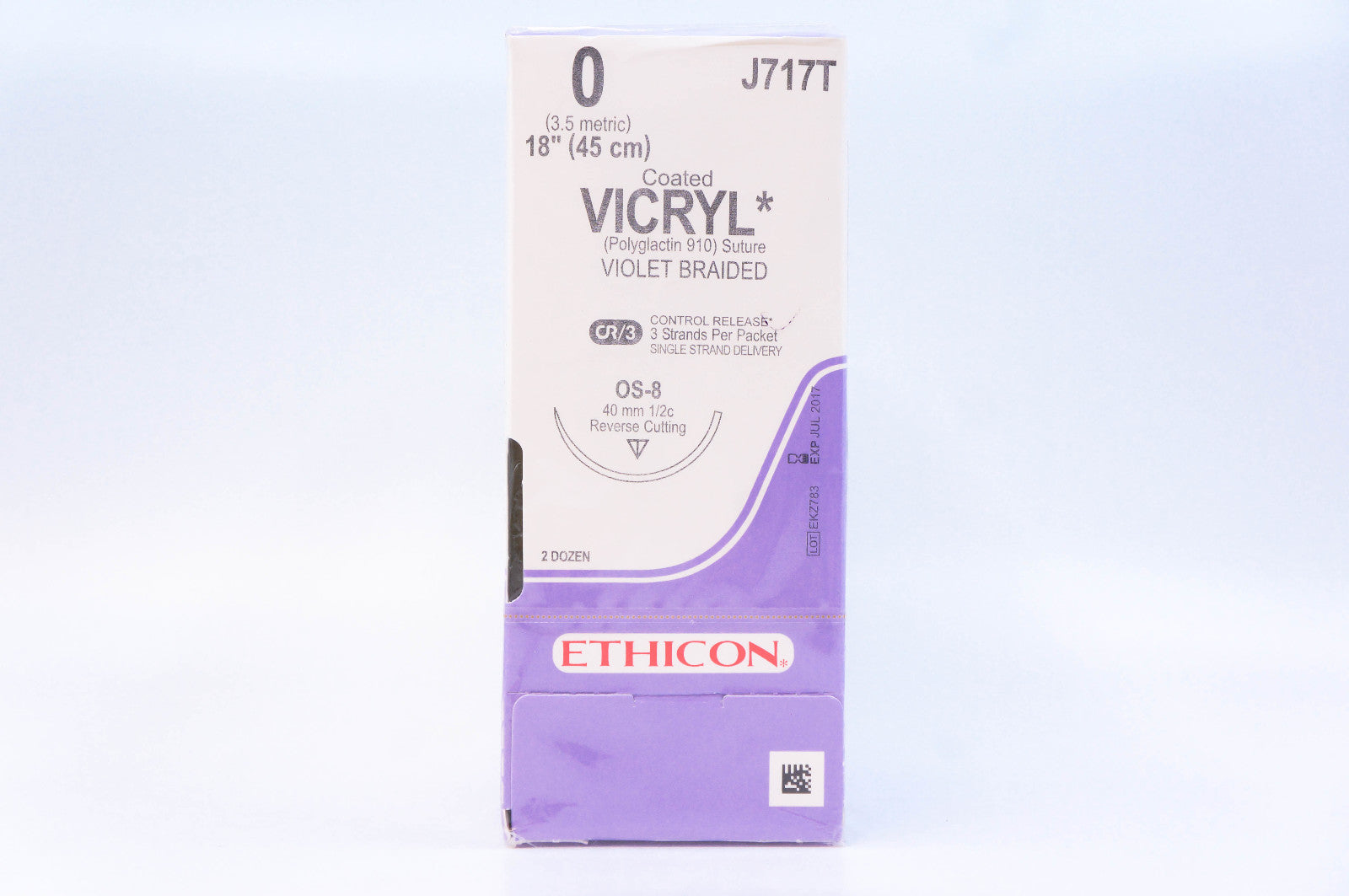 - Ethicon J717T 0 VICRYL, OS-8, 40mm 1/2c, 18inch ~ Pack of 24 (x)