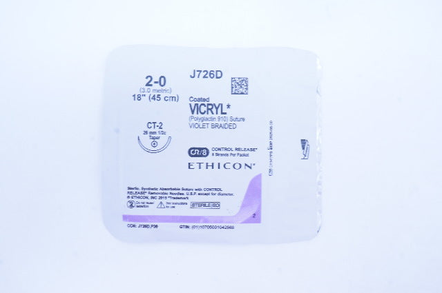 - Ethicon J726D 2-0 Coated VICRYL CT-2 26mm 1/2c Taper, 18inch
