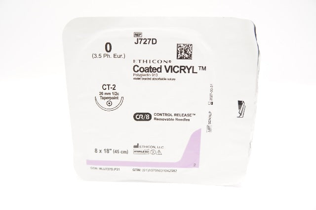 Ethicon J727D 0 Coated VICRYL Polyglactin Stre CT-2 26mm 1/2c Taper 18inch