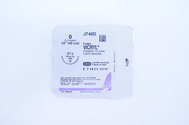 Ethicon J740D 0 Coated VICRYL CT-1 36mm 1/2c Taper, 18inch