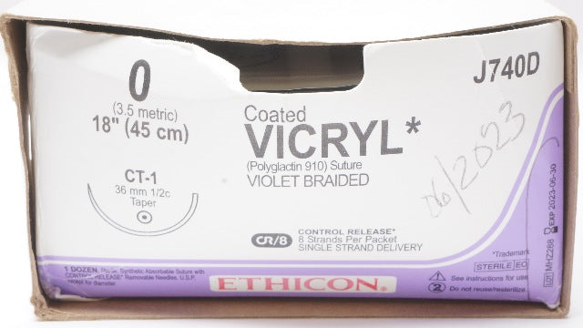 Ethicon J740D 0 Coated VICRYL CT-1 36mm 1/2c Taper, 18inch (x) - Box of 11