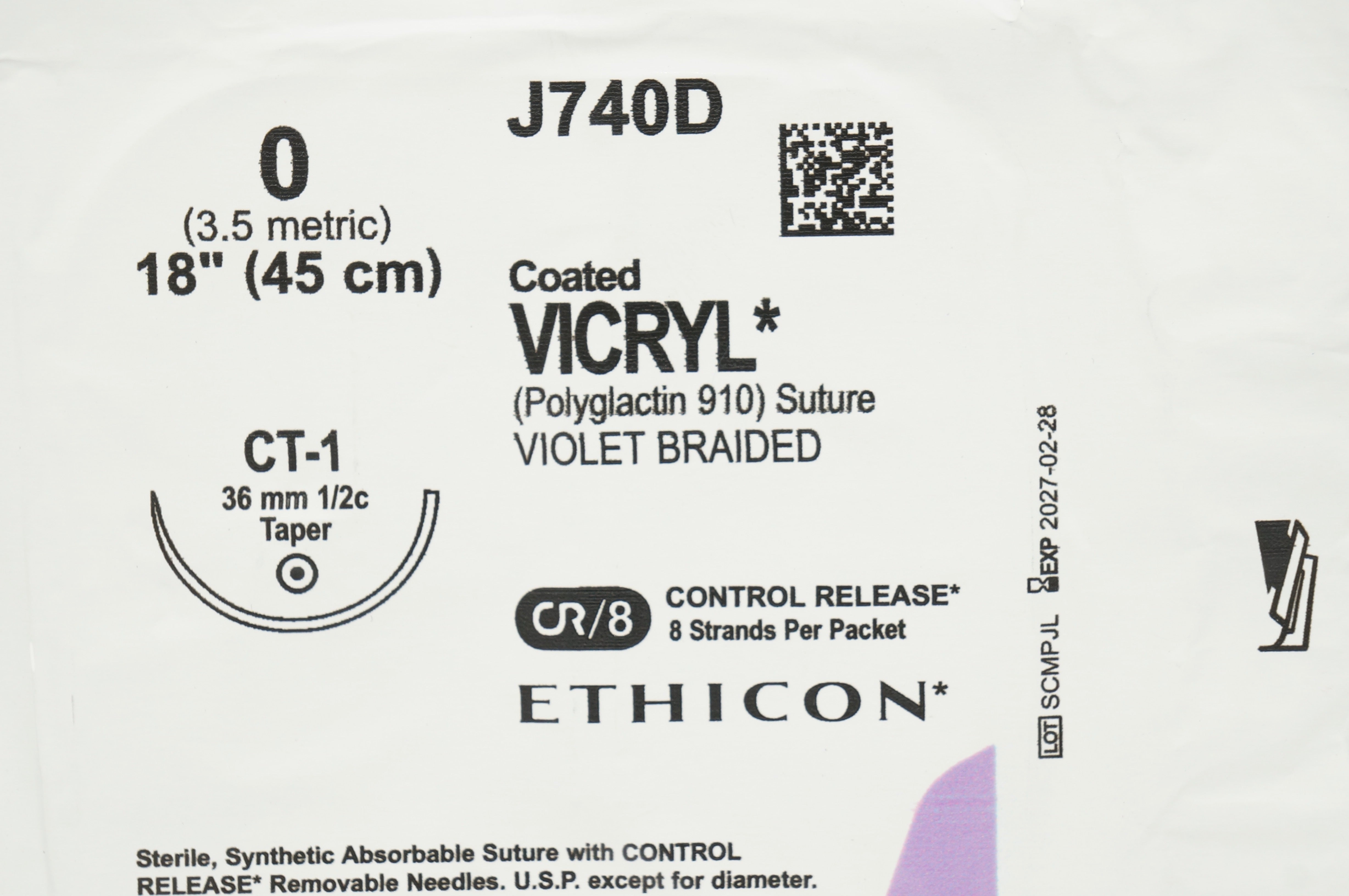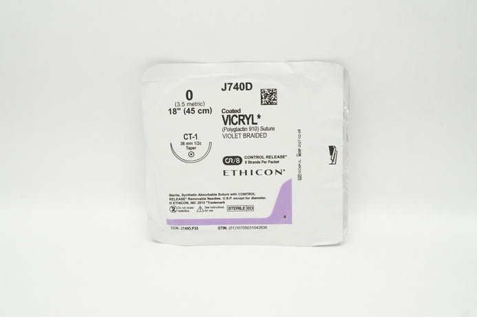 - Ethicon J740D 0 Coated VICRYL Polyglactin 910 Stre CT-1 36mm 1/2c Taper, 18inch