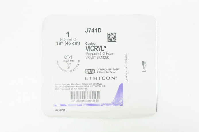 - Ethicon J741D 1 VICRYL CT-1, 36mm 1/2c Taper, 18inch