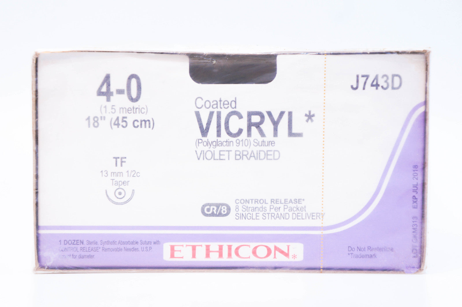 Ethicon J743D 4-0 VICRYL, TF, 13mm 1/2c Taper, 18inch ~ Pack of 12 (x)