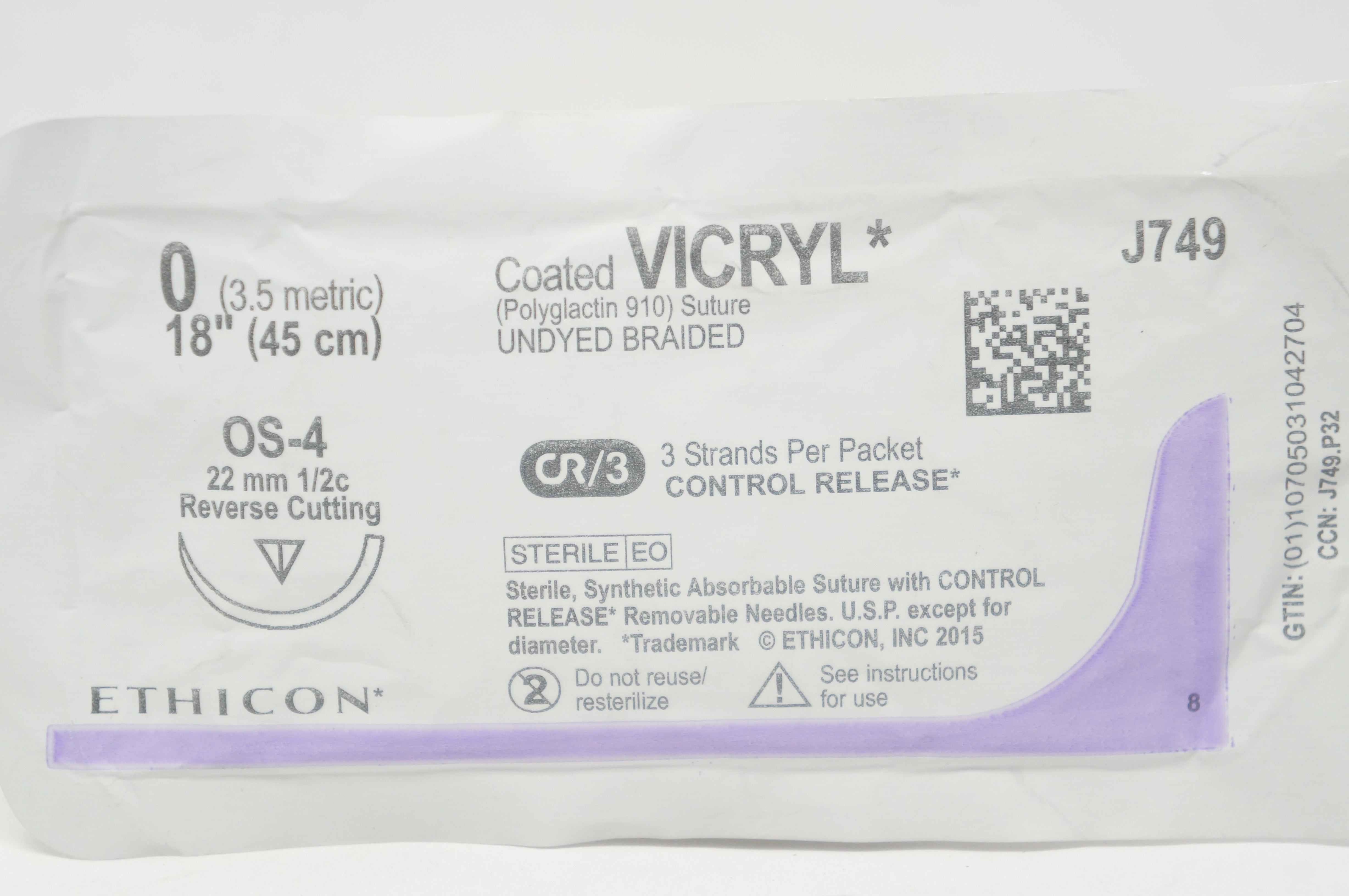 Ethicon J749 0 Coated VICRYL Stre OS-4 22mm 1/2c Reverse Cutting, 18inch (x)